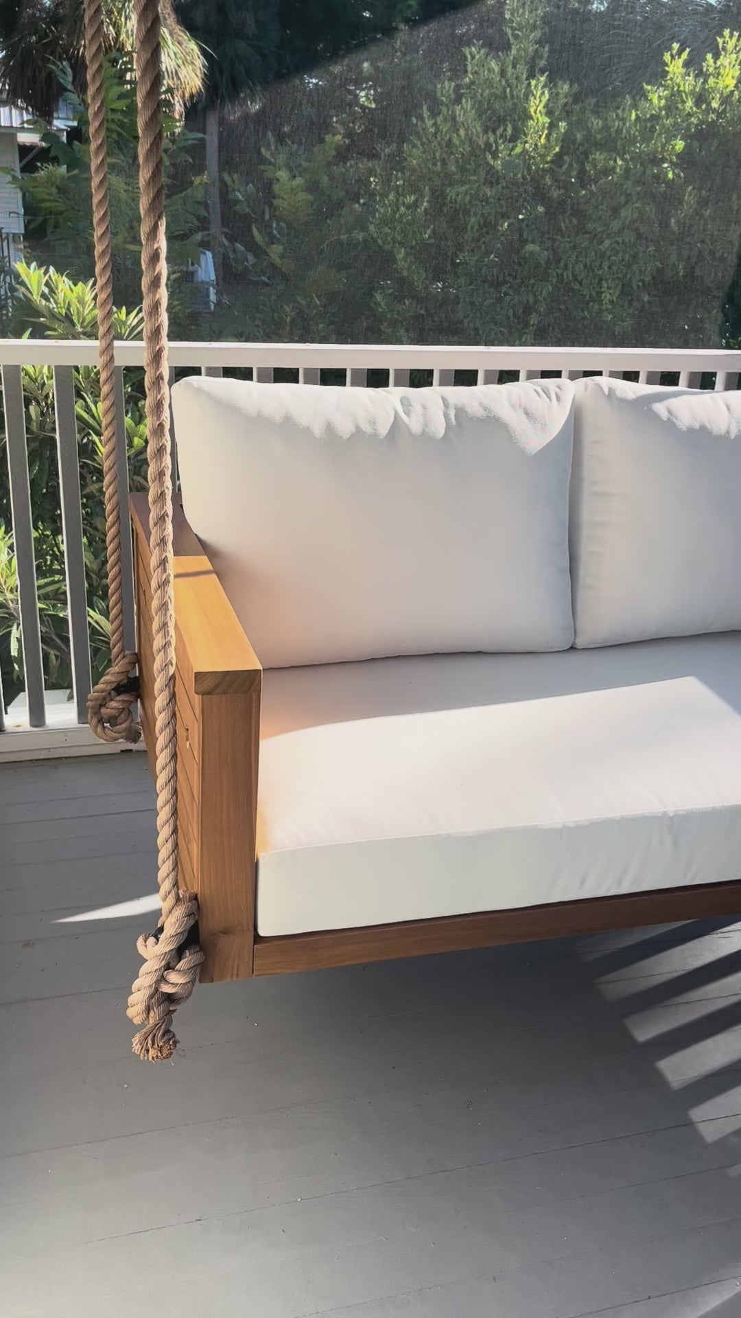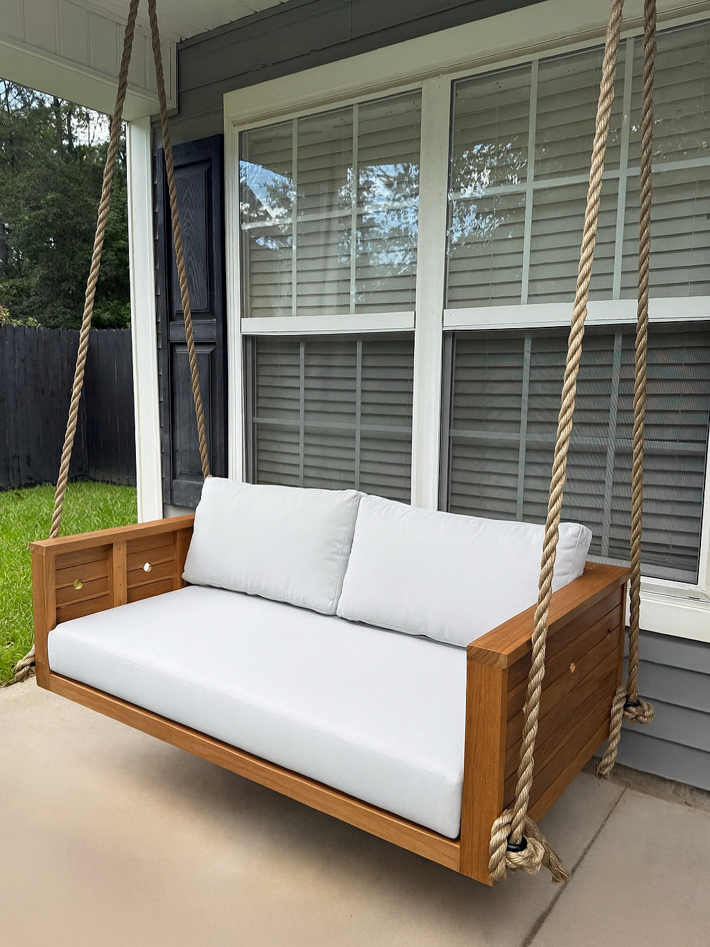 Delivered as The Whole Package, The Sedona includes a teak frame, tailored cushions, and a 1-Inch Manila Rope + Hardware Kit.