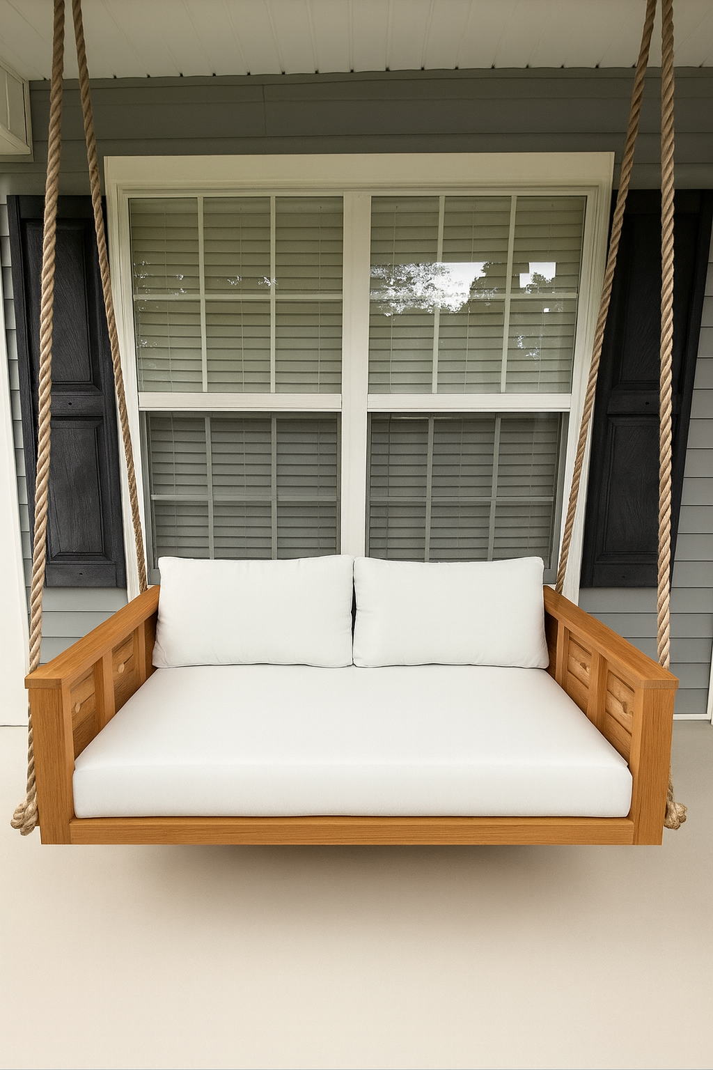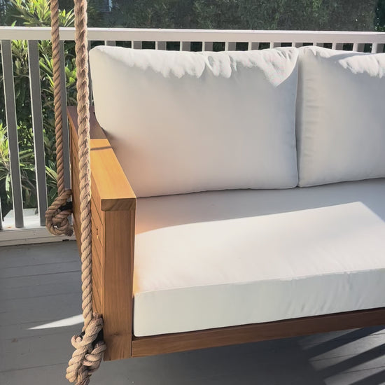 The Sedona redefines porch living with its bold lines and modern luxury. Handcrafted from premium teak, this swing bed offers both durability and design, creating the perfect escape in any outdoor space.